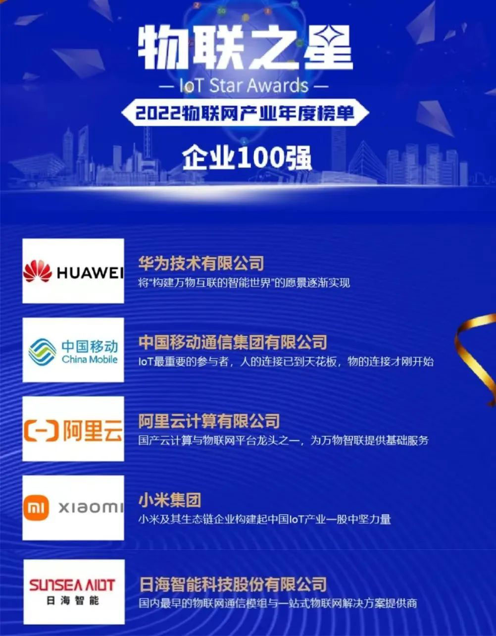 该年度榜单以公司业绩规模与人员规模较大且稳定、近三年业绩规模与净增长率表现良好、研发投入金额与占比较大并有行业影响力的新品发布、同时在物联网领域行业地位突出为四个评选标准进行严格、客观评选。飞速发展的物联网行业群雄并起,优秀企业不断涌现,KU酷游公司智能脱颖而出,与华为、中国移动、阿里云计算等知名企业齐头并进、共同成为中国物联网企业百强,背后是近三十年的实力积淀。